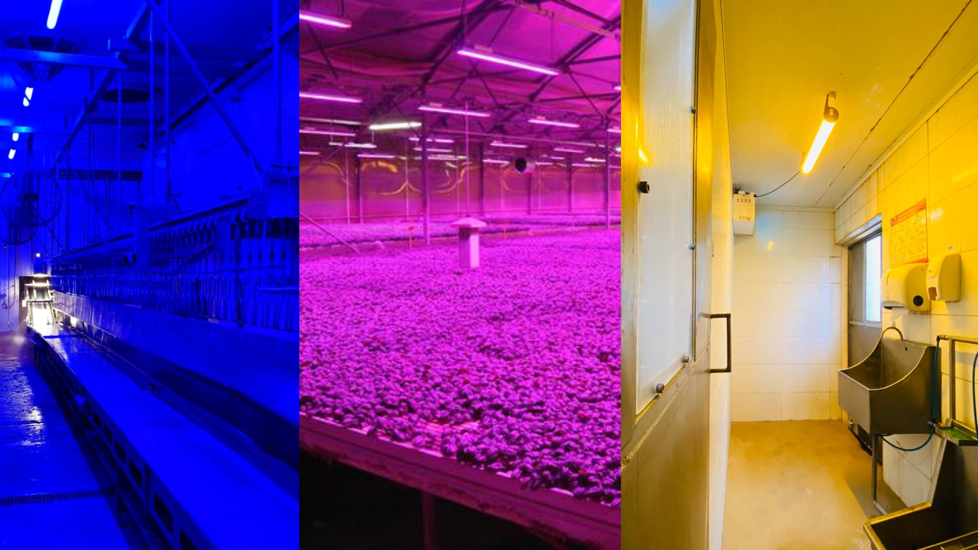 Essas variações de comprimento de onda ajudam a reduzir o estresse das aves no abate, estimulam o crescimento de plantas em estufas e áreas urbanas e ainda funcionam como barreira contra insetos, prevenindo contaminações.